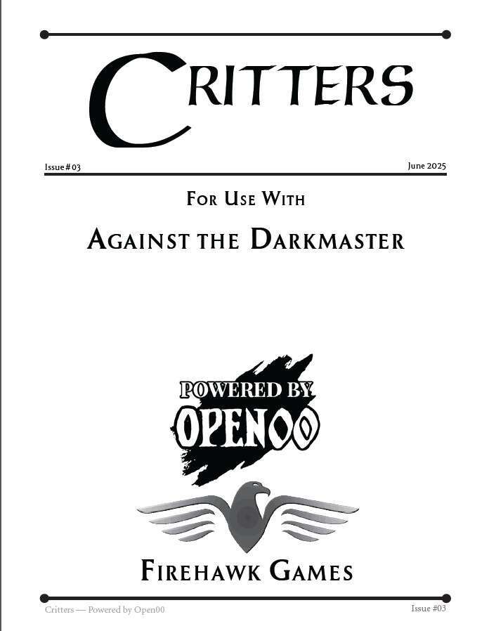 The information provided in this work is designed specifically, and unofficially, to be used with Against the Darkmaster, but it can also be used with many other fantasy role-playing systems. The material presented in Critters is meant to aid a GM in running their game.
